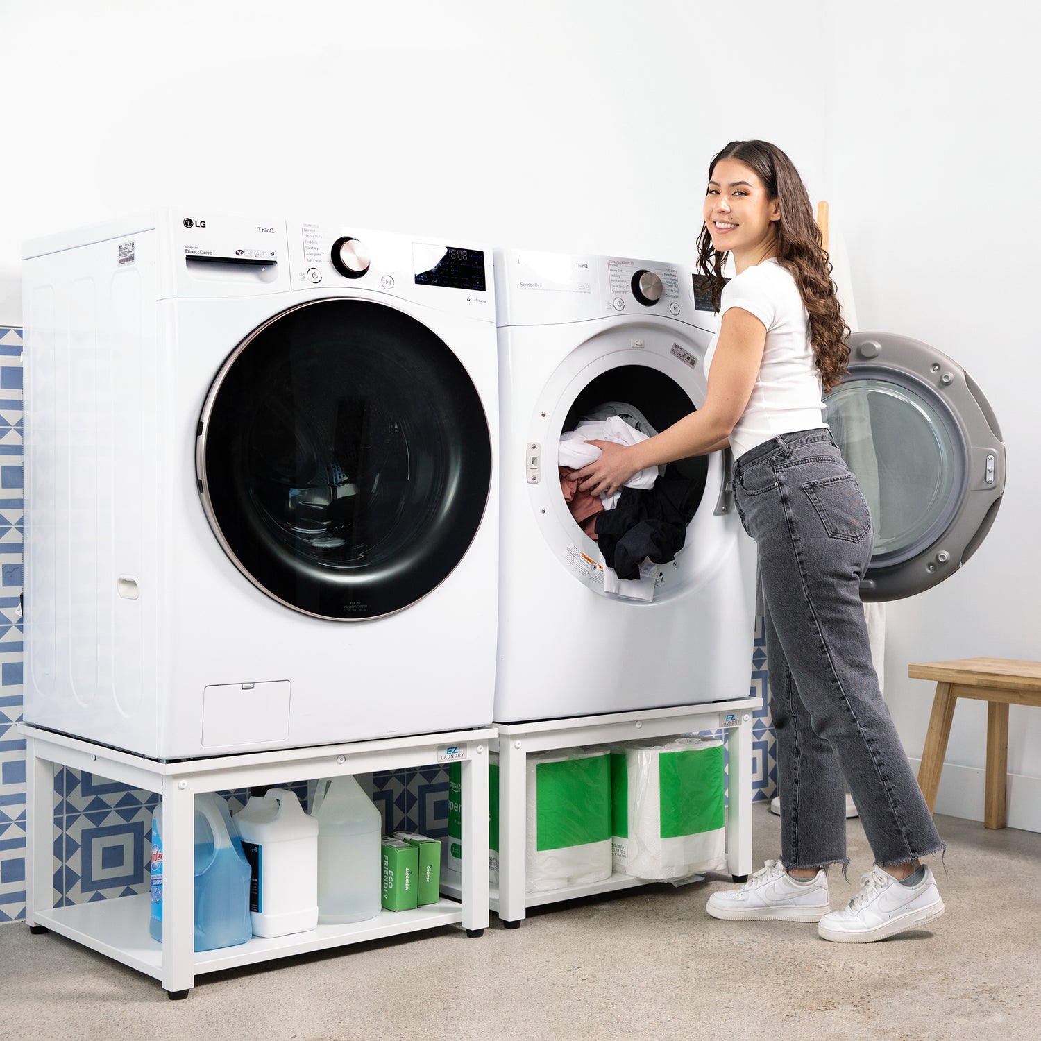 - ✔️ Become Organized & Efficient — Creates more usable space under your machines so every inch of your laundry room works for you.